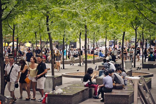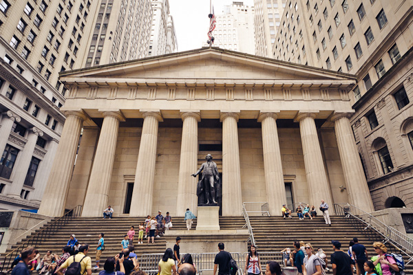 Mit dem Segel-Boot wieder nach Manhattan. Wallstreet, Woolworth, City-Hall, 9/11 von aussen, und überhaupt alles „da unten“. Am Ende davon war ich eigentlich enttäuscht. Die Erwartungen waren zu groß. Ist mir klar, dass in Filmen alles polierter, monumentaler und einzigartiger aussieht. Ich war bisher einfach nicht so beeindruckt wie ich es gerne gewesen wäre. Zur Entschuldigung für New York: dieser erste Tag ist ein Sonntag, wohl eher schlecht um dieses Viertel zu erkundigen.
