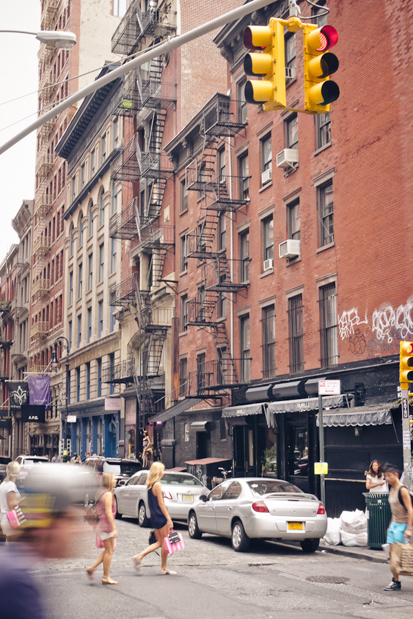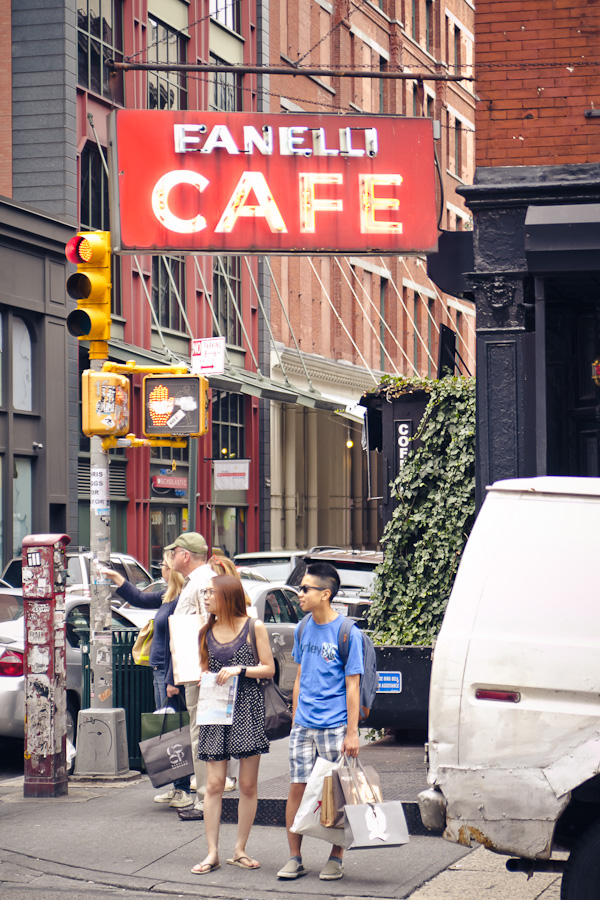 Es reicht erstmal mit den hohen Gebäuden. Wir fahren also nach SoHo. Hier gefällt’s mir jetzt richtig gut. Sehr belebt alles. Und die Leute wirken alle sehr dynamisch, aufgeschlossen und nett. Viele kleine interessante Läden. Wir gehen kreuz und quer durch die Straßen, sehen uns die wunderschönen Häuser mit dem vielen Metall an ihren Fassaden an. Und beschließen hier nochmal her zu kommen wenn wir irgendwann in den nächsten Tagen Zeit finden. (Finden wir aber nicht. Gut für euch, so wird’s mit den Bildern nicht langweilig. ;) )